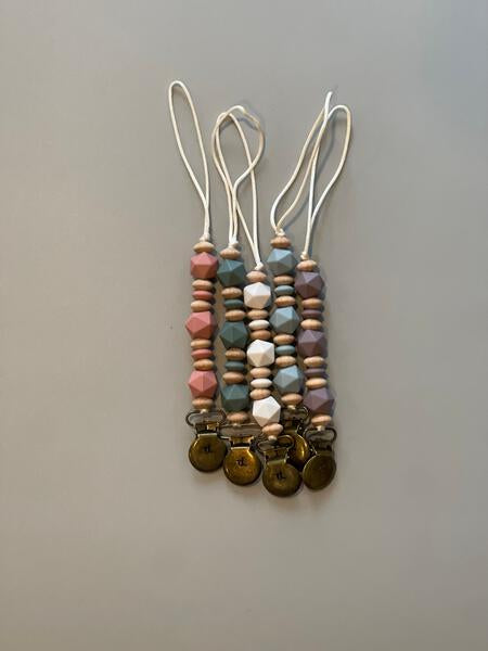 The Petite Luca Pacifier & Toy Clip can be worn by baby and Mom! This clip is designed for our newborns and will be able to withstand use from the start to toddler stage. We love our new collections with a shorter and smaller bead combination providing mom with immediate clip use. The clip is light weight and each to attach to paci for any new peanut!